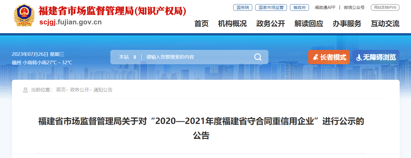 恭喜建融集团荣获?020?021年度福建省守合同重信